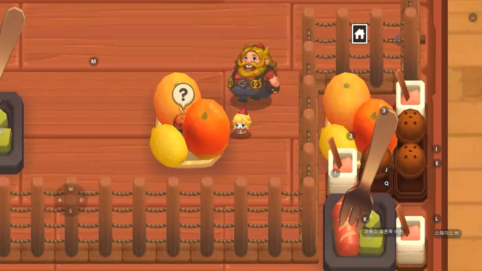 처음에 뚱보 친구 없이 개미를 잡으려면, 과일을 들어서 던지면 개미를 처치할 수 있습니다.