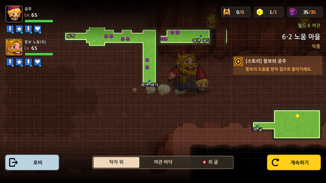 가디언 테일즈 악몽 월드 6-2 여관 노움 마을
