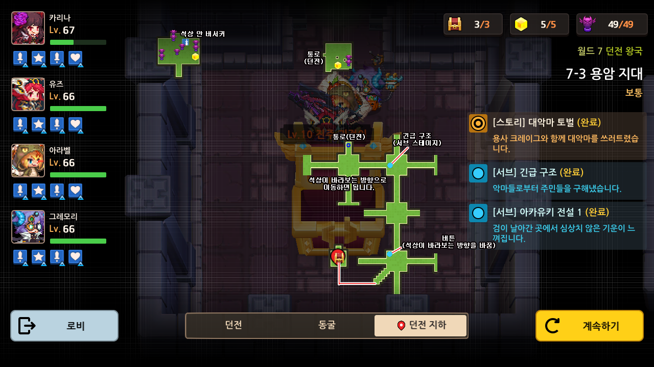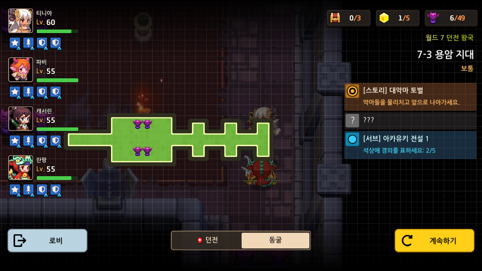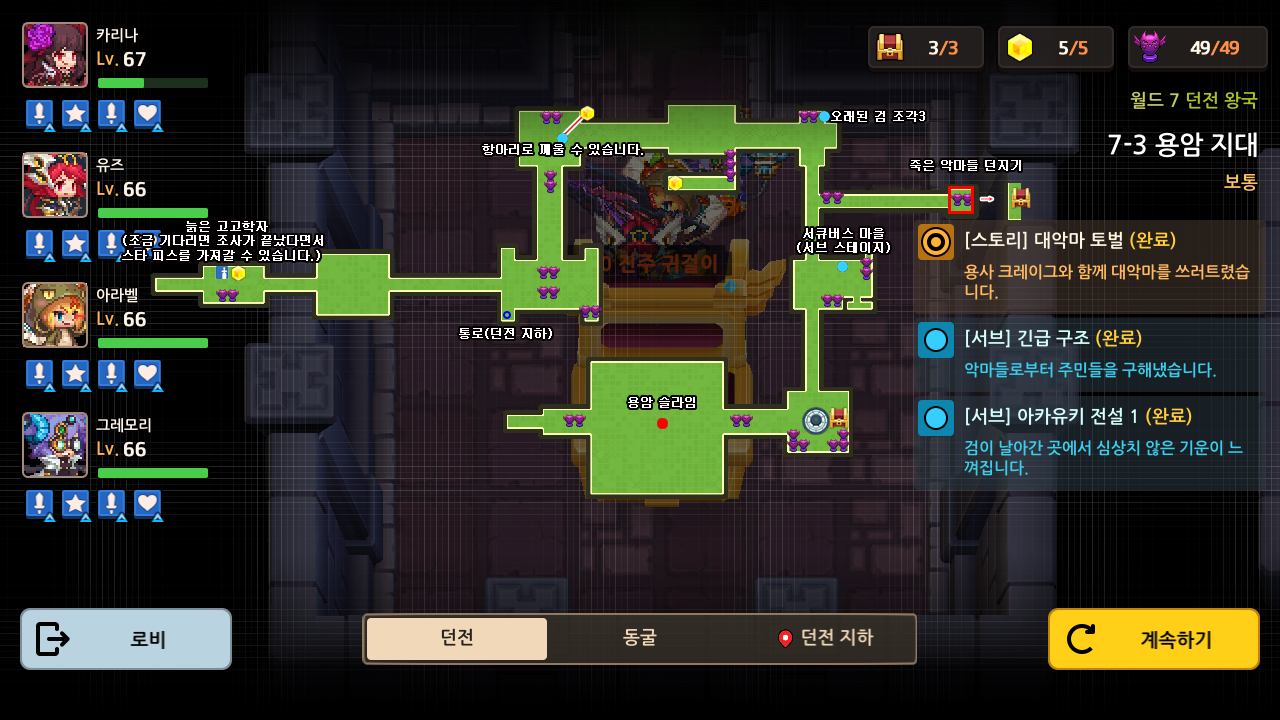 가디언 테일즈 월드 7-3 던전 왕국 용암 지대