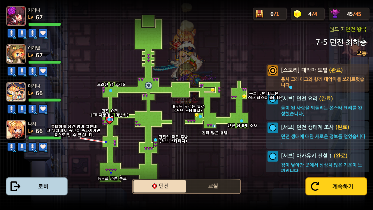 가디언 테일즈 월드 7-5 던전 왕국 던전 최하층