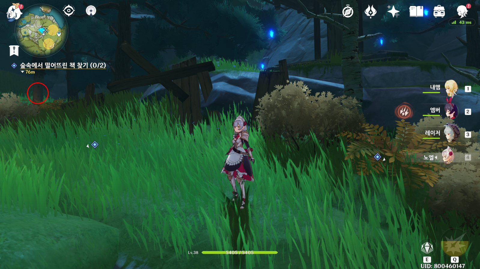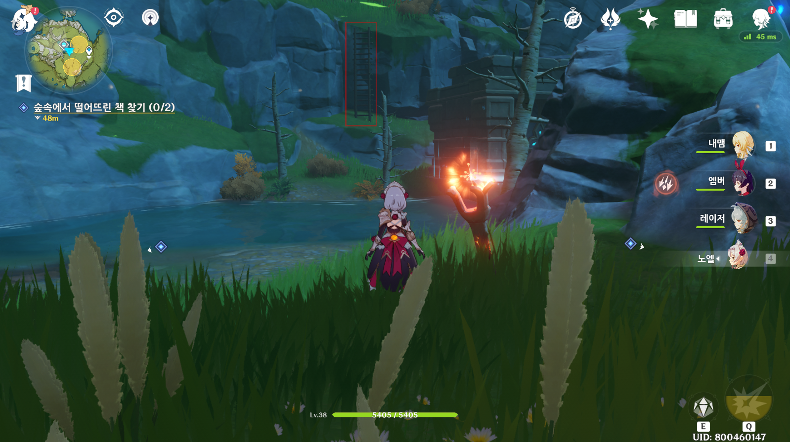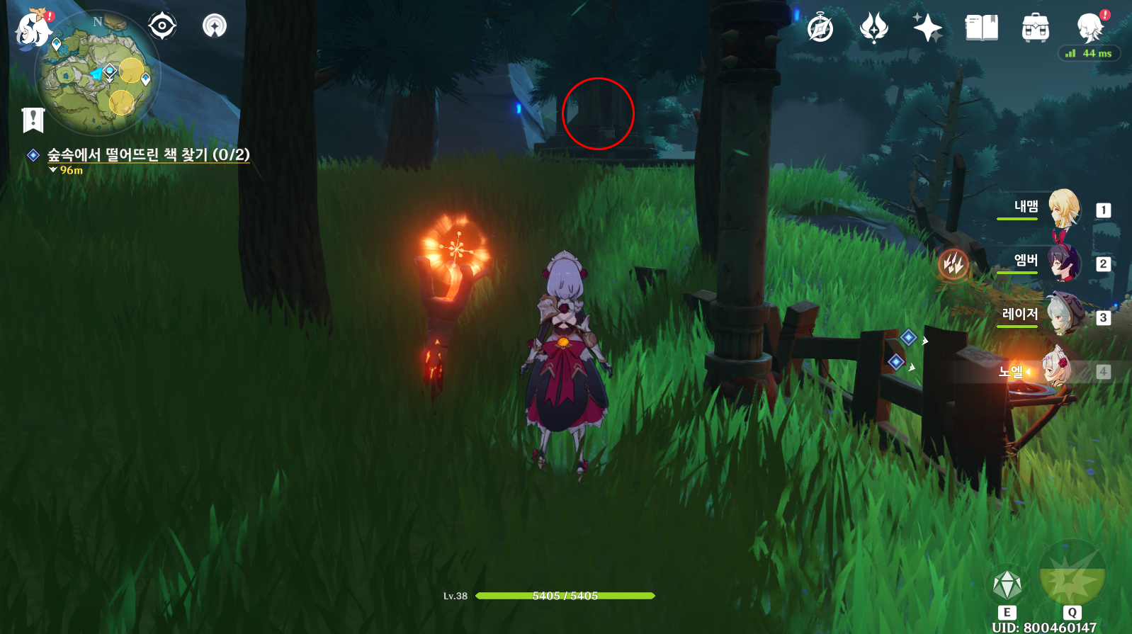 아래 사진처럼 보일 겁니다. 여기서 엠버로 저격을 해서 불 원소 반응을 일으키면 됩니다.
