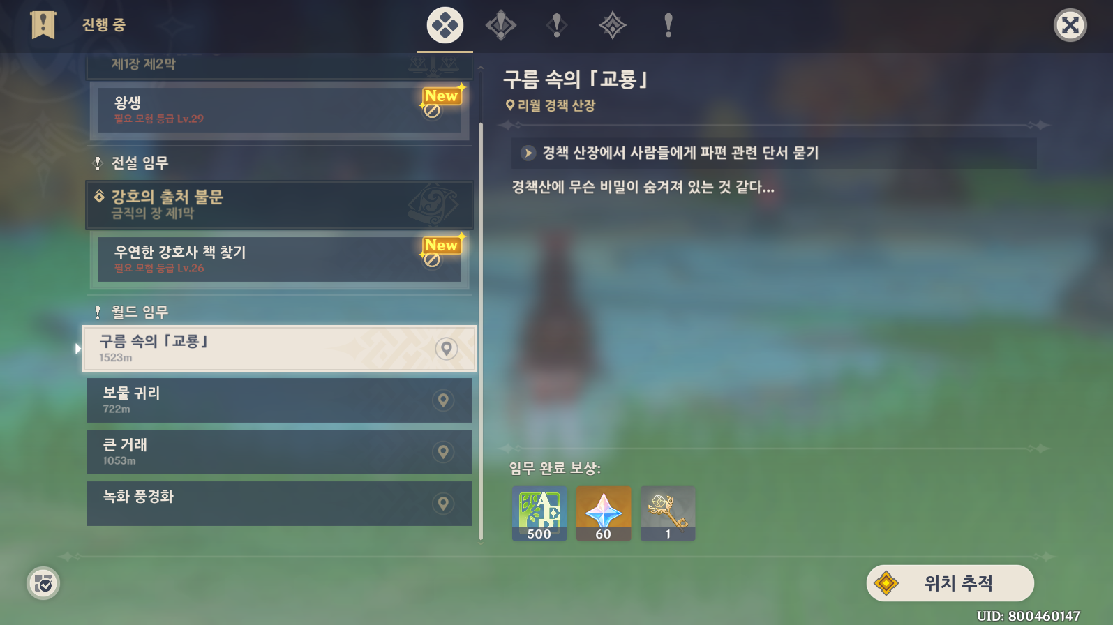 구름 속의 교룡 이전 퀘스트들 공략 원신 유적 조사 돌의 위치 원신 유적 조사 돌의 위치 임무 지역의 가운데에 가면 이상한 문자들이 보이는 게 있는데 상호작용을 하면 주변에 돌을 보라고 나