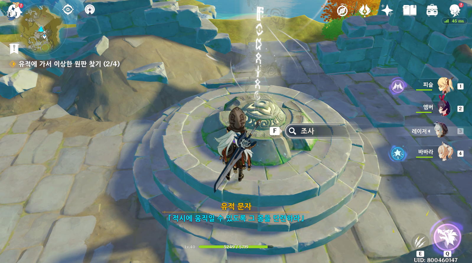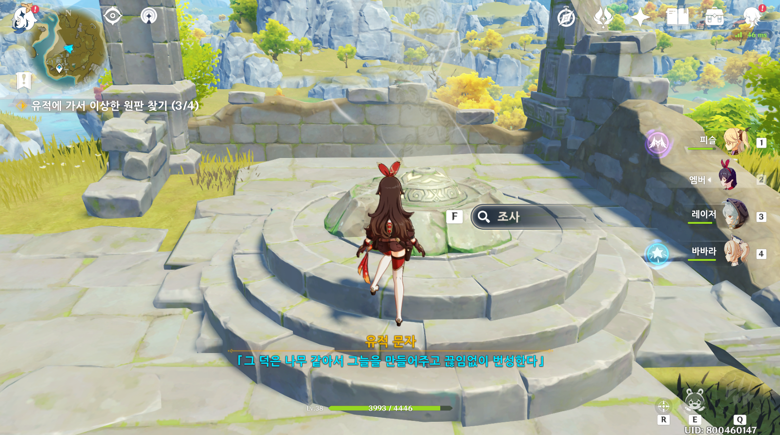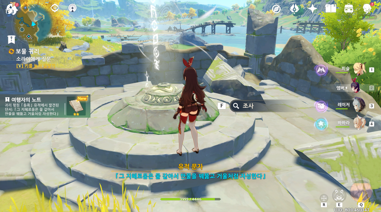 원신 보물 귀리 최후의 유적 발견하기 최후의 유적 위치입니다. 장치에 가까이 가서 상호작용하면 유적 가디언을 처치해야 합니다. 이후 장치를 활성화하면 보물을 얻고 NPC에게 가면 퀘스트가 �