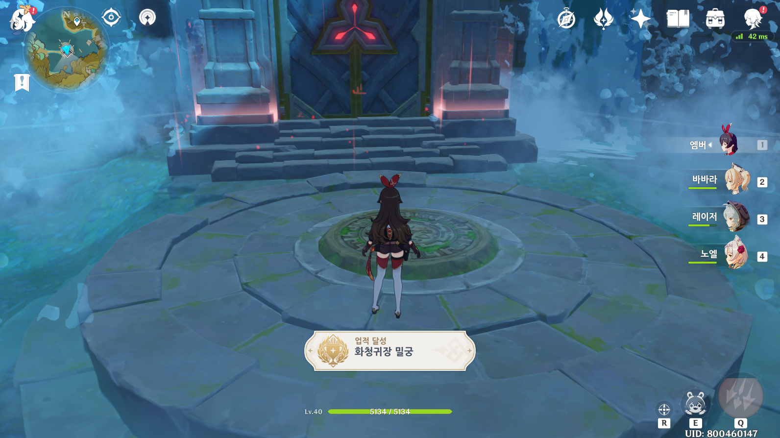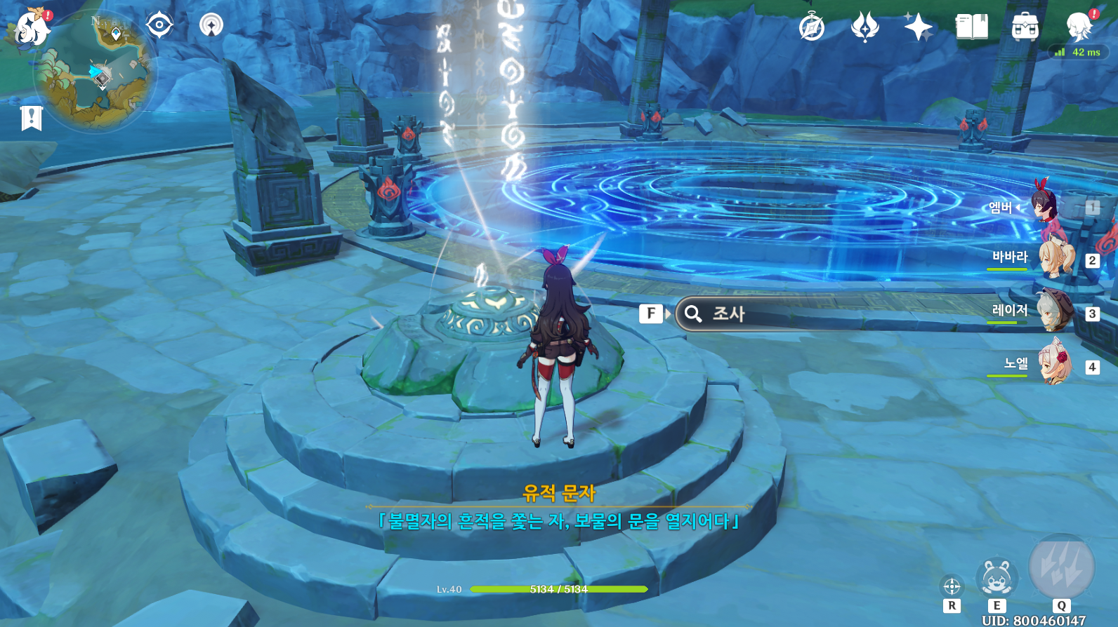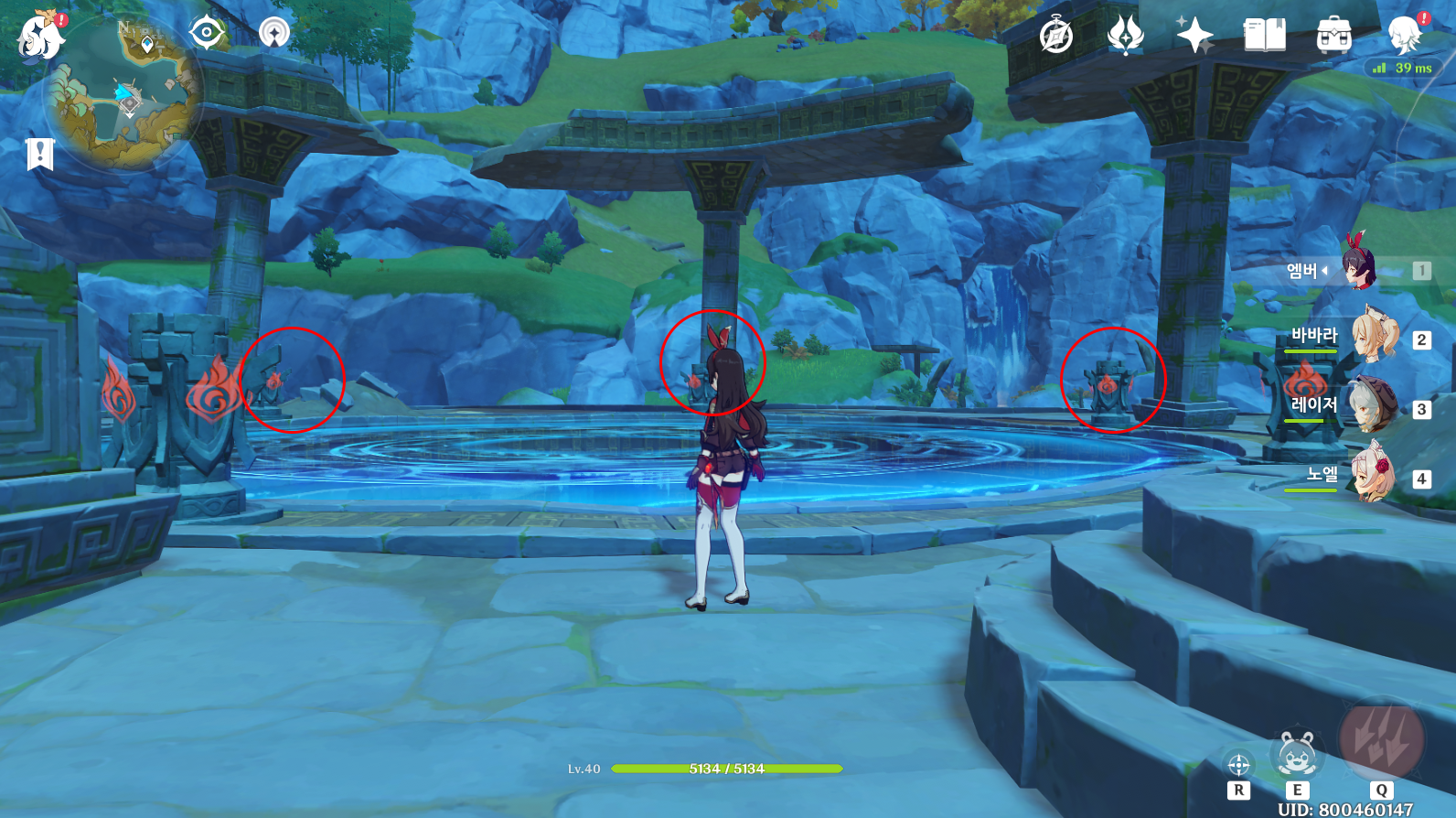 그런데 이때 모든 토템에 원소 반응을 일으키는 게 아니고 아직 기둥이 남아 있는 위치에 토템들만 원소 반응을 일으키면 가운데 봉인이 사라지며 화천귀장 밀궁의 워프를 활성화할 수 있습니다.