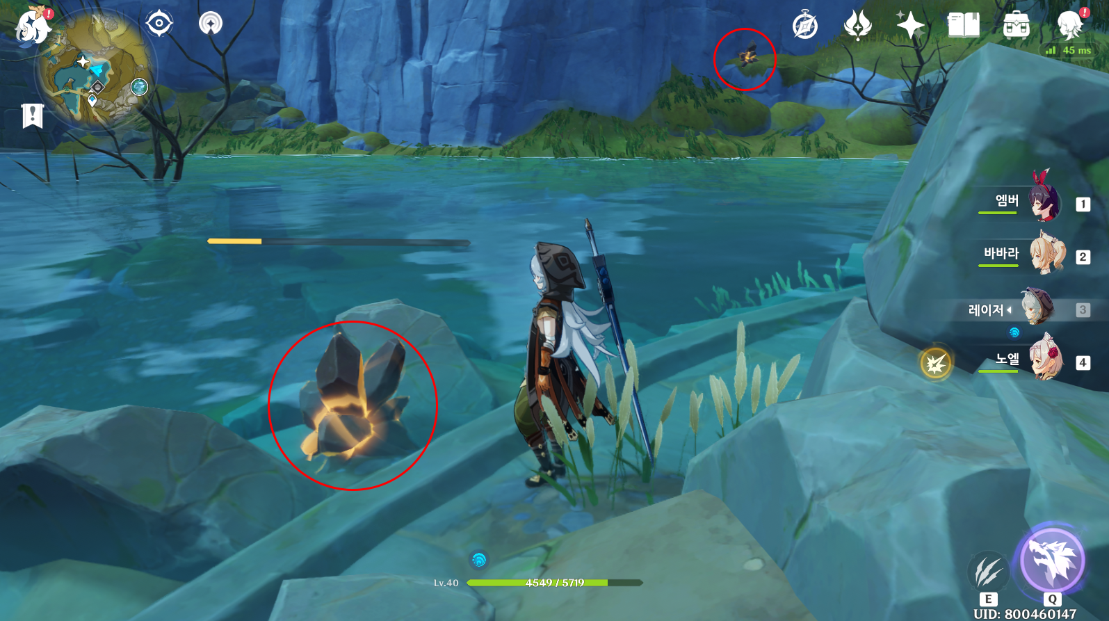 주변을 잘 돌아보면 아래 사진에 나온 돌 같은 것들이 있습니다. 부수면 정령(?) 같은 게 나옵니다.