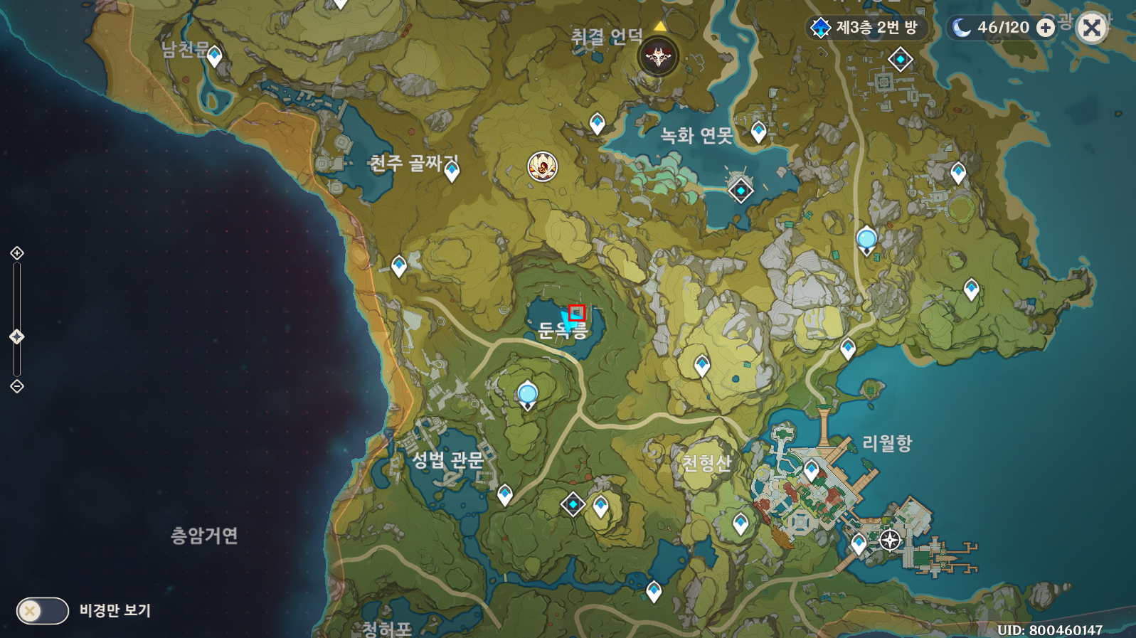 지도에 표시한 위치 둔옥릉에 가면 봉인되어 있는 토템이 있고 그 건물 아래 잠겨있는 장소에는 보물이 있습니다.