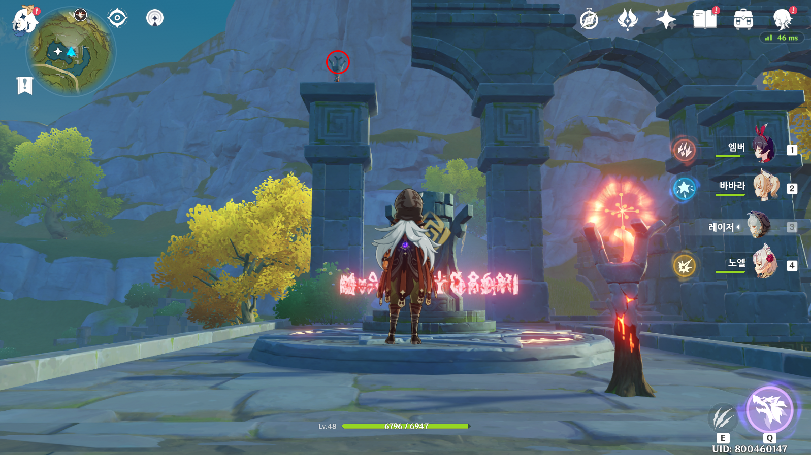 아래 사진을 보면 빨간 원 표시한 부분에 파란 원으로 표시한 정령(?)을 집어넣어야 합니다. 제가 할 때 선령의 위치가 결계 옆에 있어서 그 위치인 줄 알았으나 잘못된 부분이 있습니다. 아래 사진의 위치에 있는 선령은 토템(위 사진에서 바위 토템) 주변에 있습니다. 가디언이 있는 건물의 위층입니다.