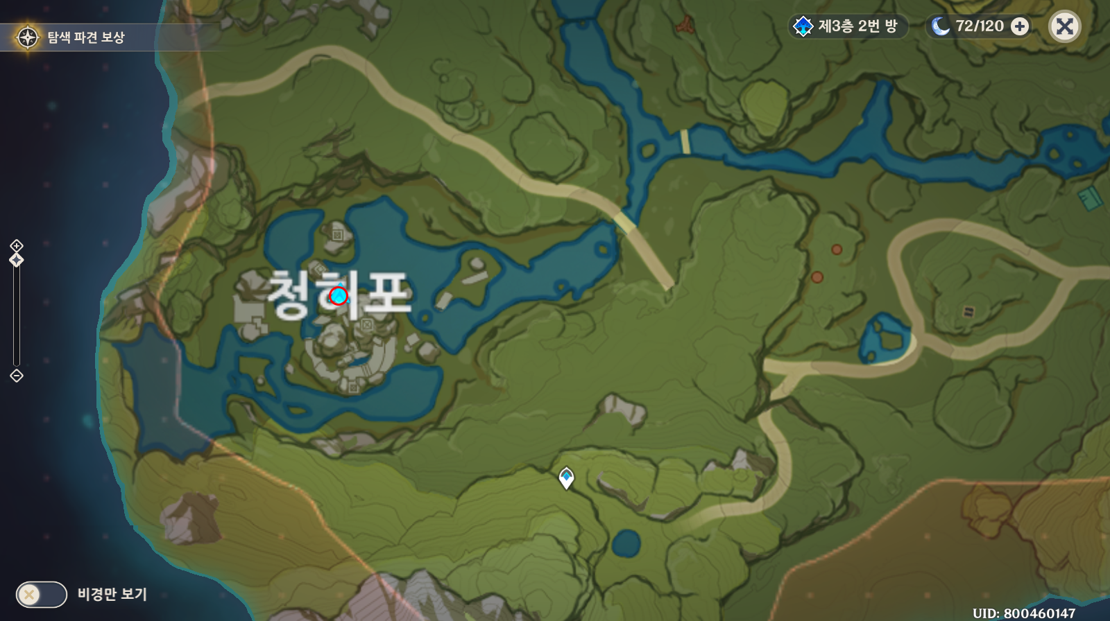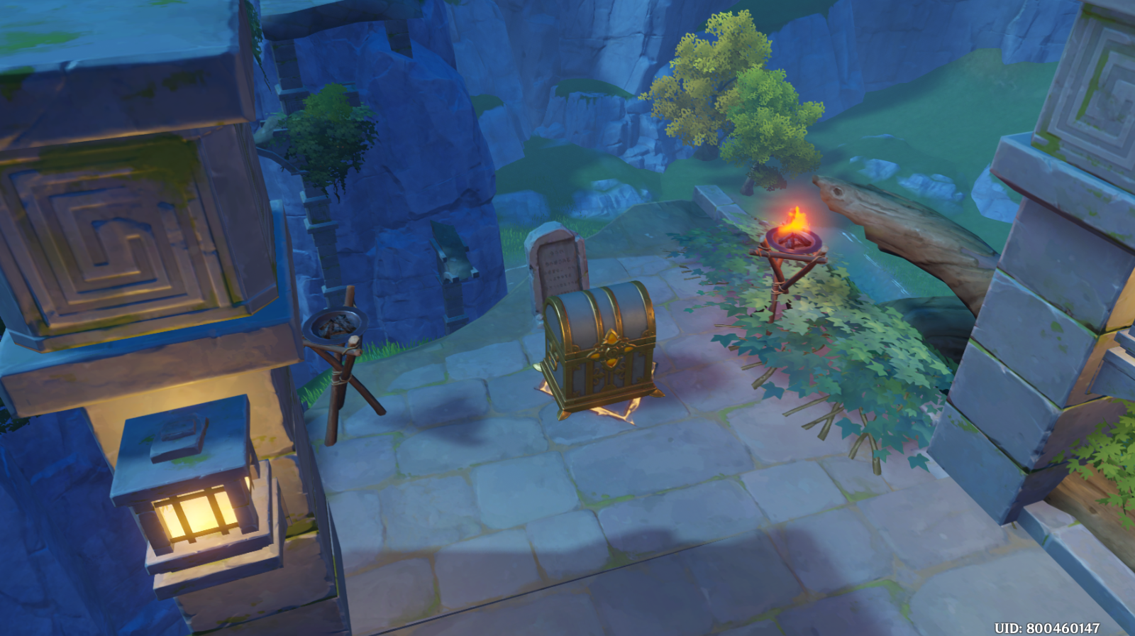 원신 성법 관문 무명의 보물 월드 임무를 받을 수 있는 위치입니다. 지도에 표시한 위치에 가면 아래 사진과 같이 있고 아무거나 상호작용하면 월드 임무 성법에 있는 보물을 시작할 수 있습니��