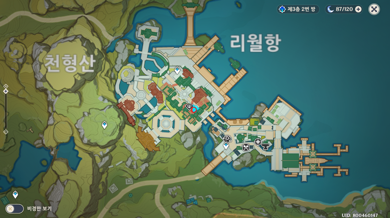 원신 성법 관문 무명의 보물 월드 임무를 받을 수 있는 위치입니다. 지도에 표시한 위치에 가면 아래 사진과 같이 있고 아무거나 상호작용하면 월드 임무 성법에 있는 보물을 시작할 수 있습니��