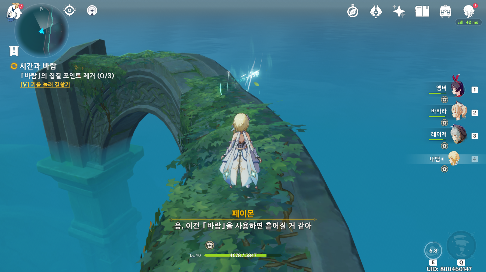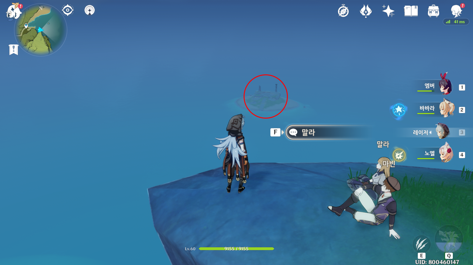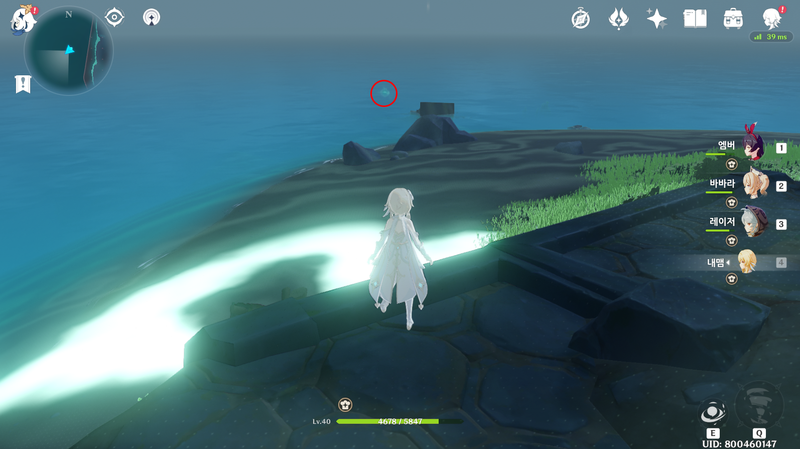 위 사진에 표시한 섬이 보일 겁니다. 이때 저 섬에 가려면 스태미나가 220 정도는 있어야 하지 않나 싶습니다.