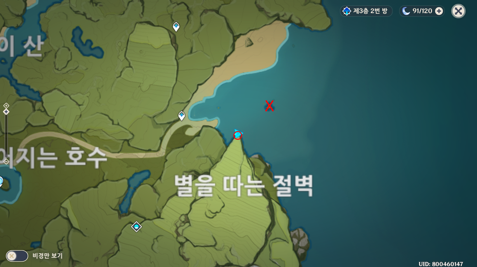 별을 따는 절벽 지도에 표시한 위치에 가면