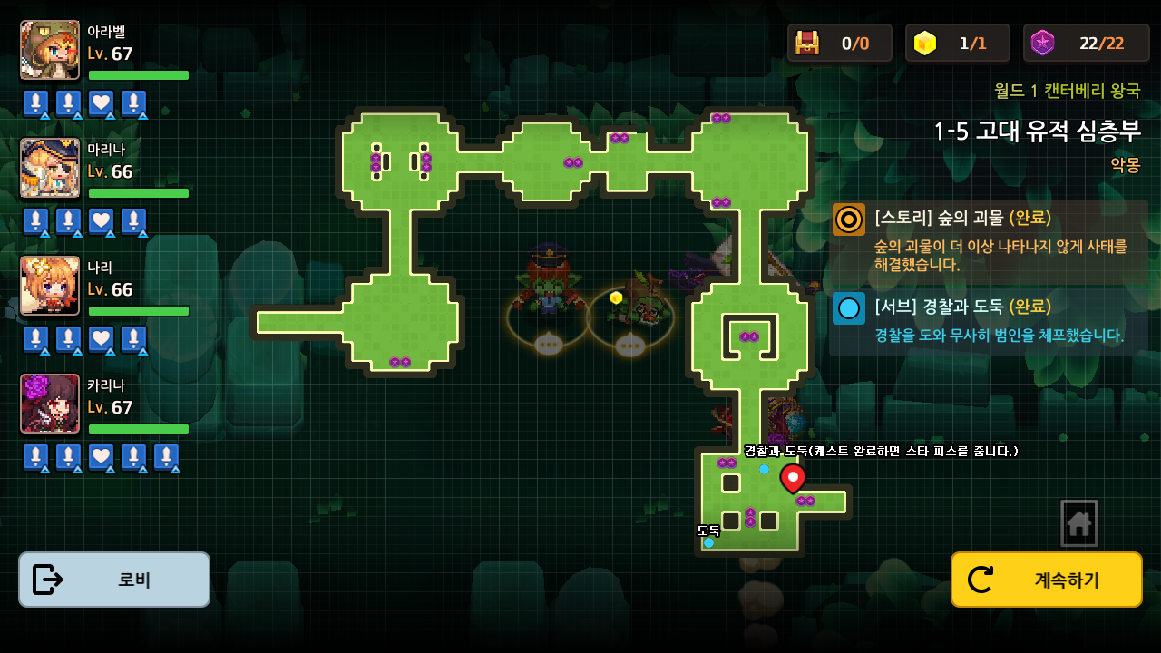 가디언 테일즈 악몽 월드 1-5 캔터베리 왕국 고대 유적 심층부