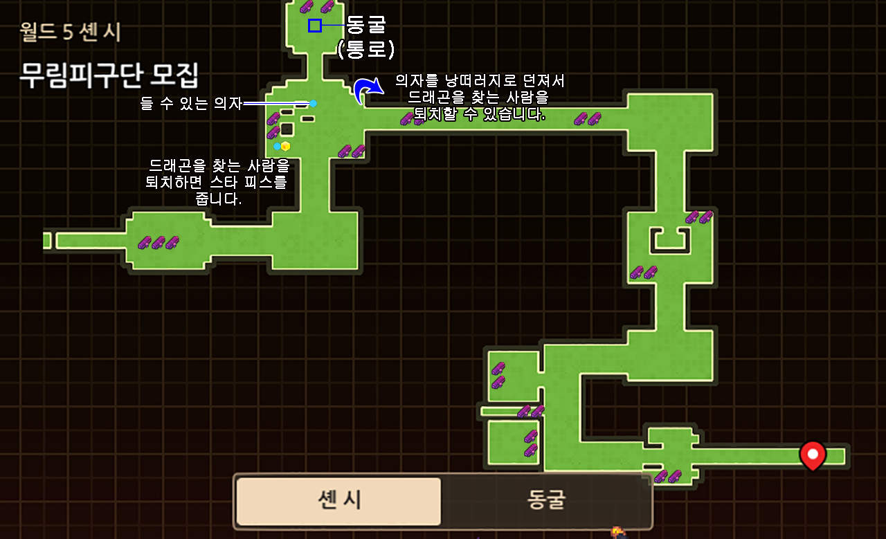 스타 피스는 의자를 들고 의자를 절벽 아래로 던지면 드래곤을 찾는 사람도 퇴치할 수 있습니다. 그다음 맨 아래 사진에 있는 NPC가 스타 피스를 줍니다.