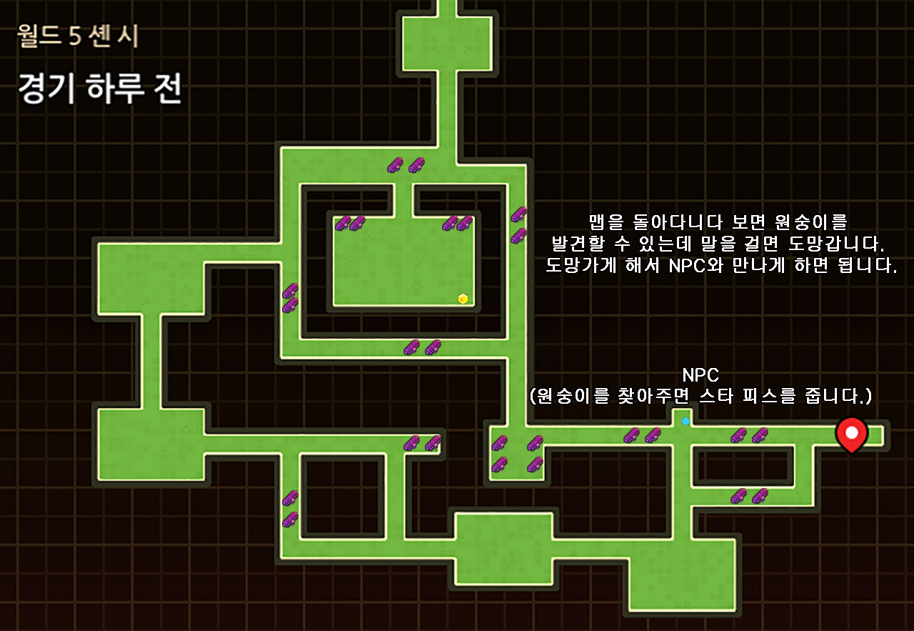 원숭이는 말을 걸면 그 반대 방향으로 도망갑니다. 그 부분을 이용해서 NPC가 있는 위치로 이동시킬 수 있습니다.