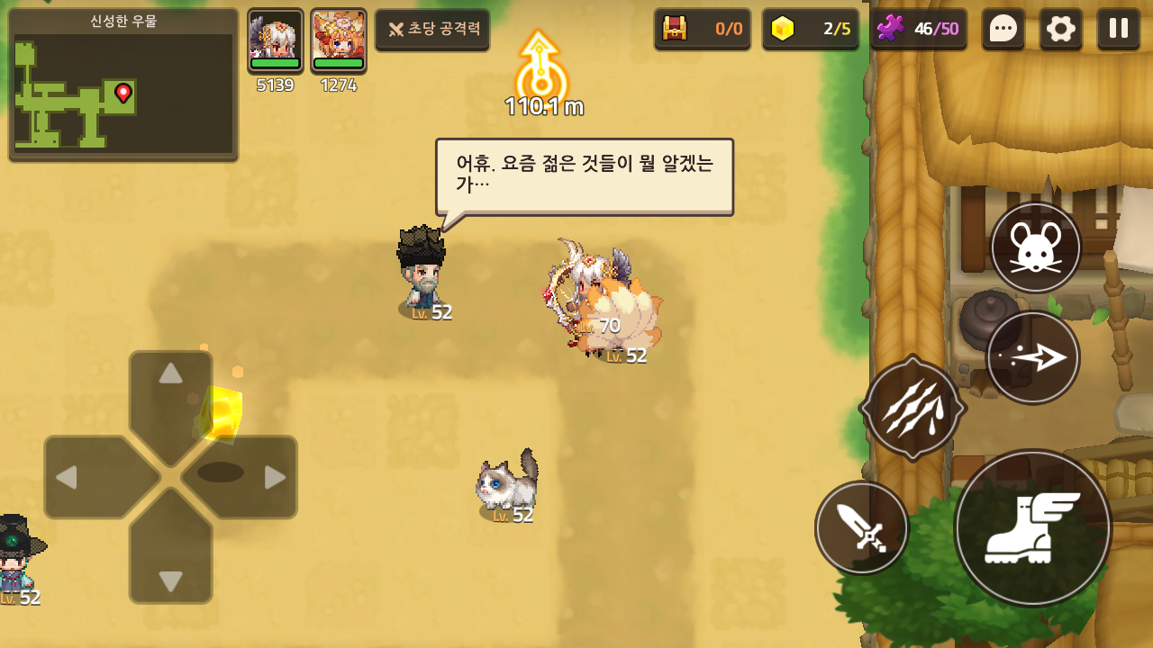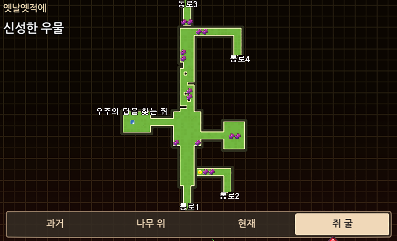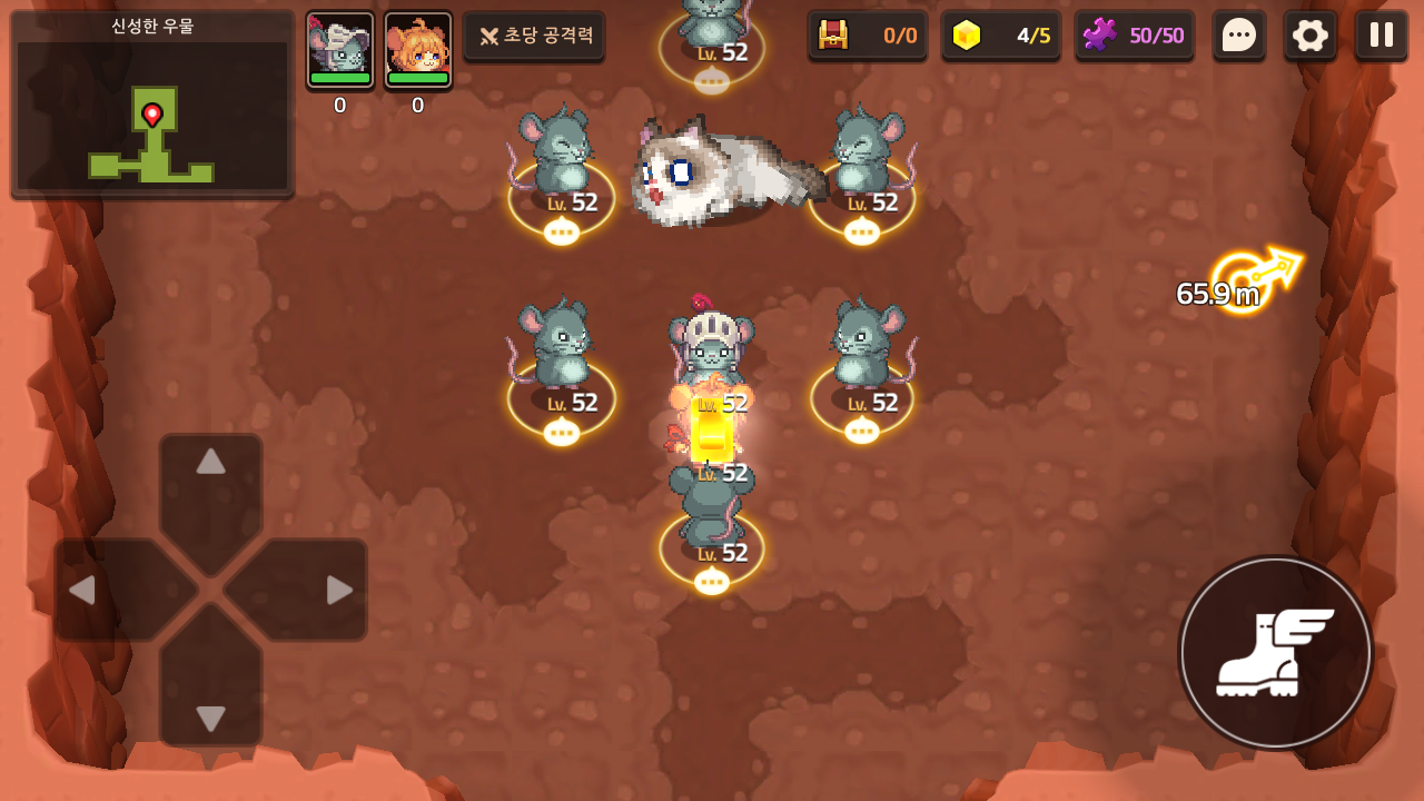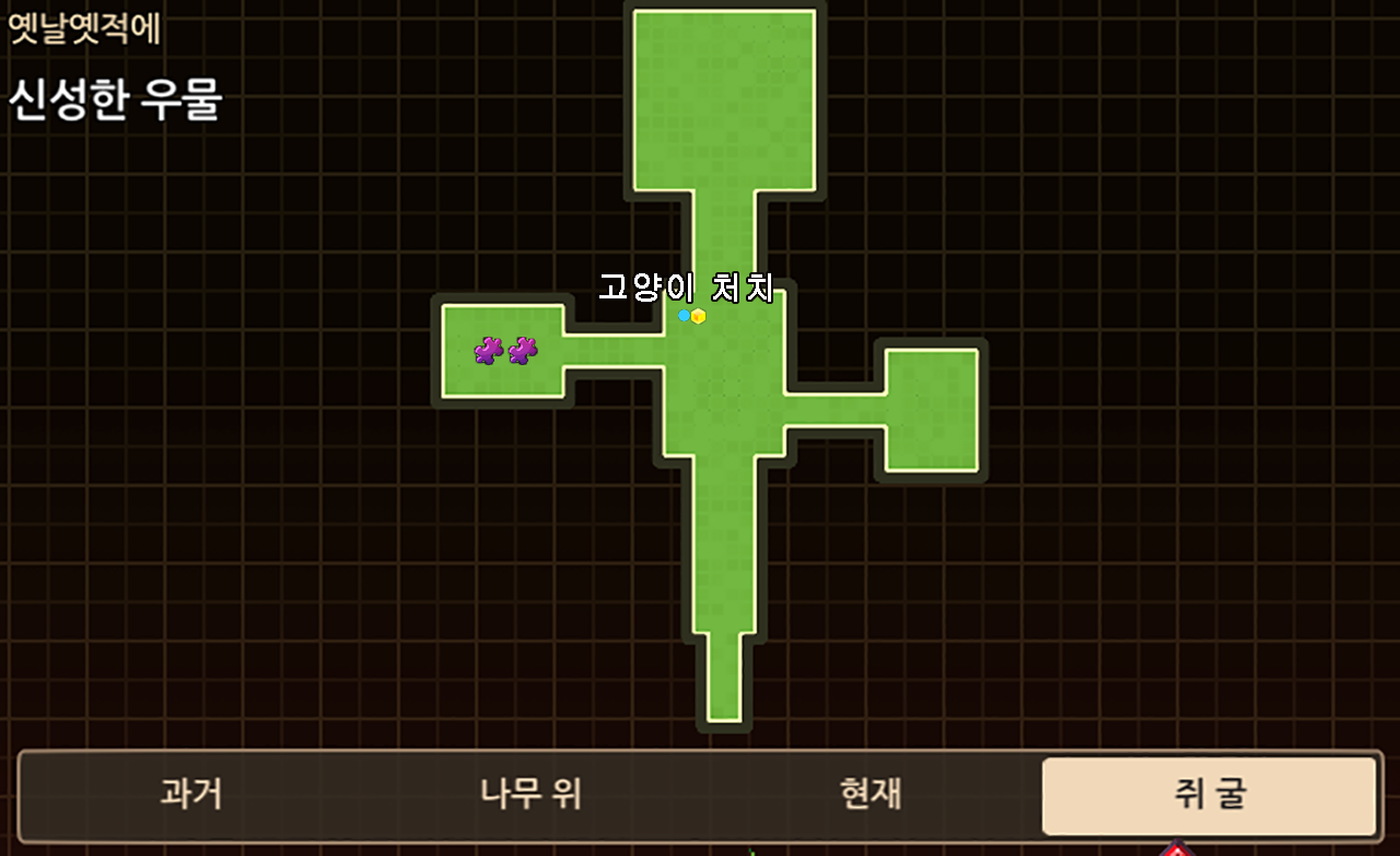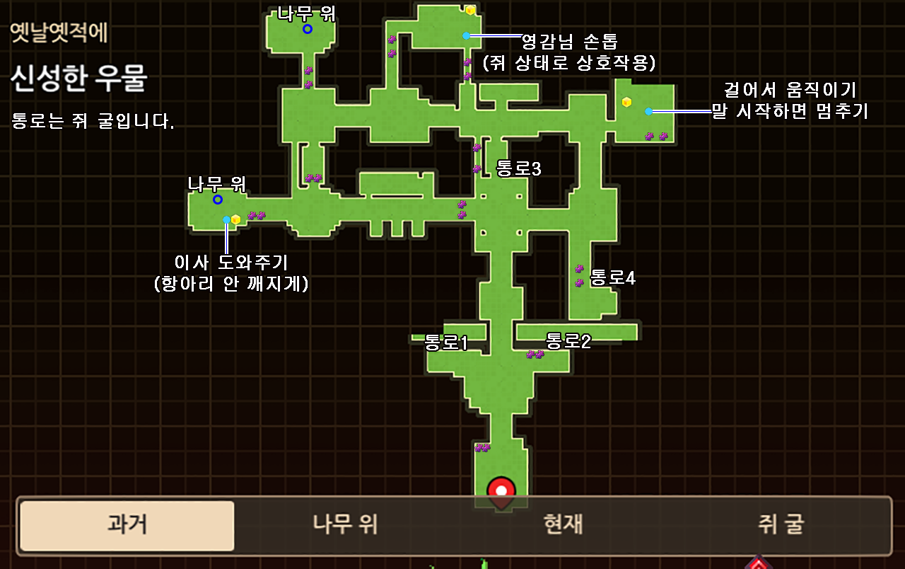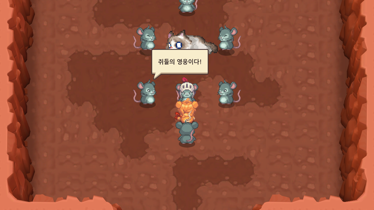 현재로 가서 쥐 굴로 이동하면 아래 쥐들이 고양이를 처치해달라고 합니다. 쥐는 고양이에게 대미지를 줄 수 없고 오로지 고양이가 벽에 부딪히게 만들어야 대미지를 줄 수 있습니다.