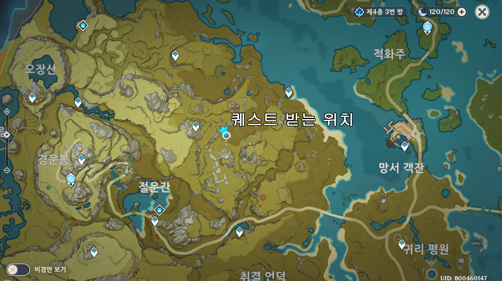 위 표시된 위치로 가면 아래 사진의 유적 비석이 있습니다. 유적 비석과 상호작용하면 야차의 소원을 시작할 수 있습니다.
