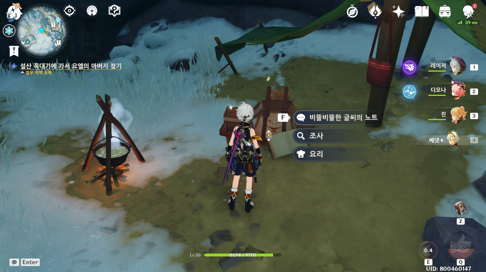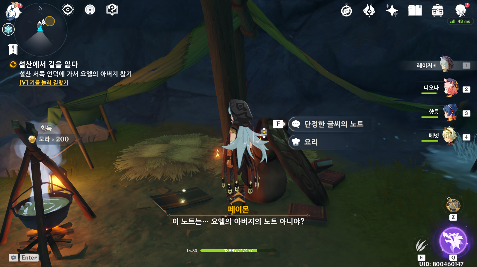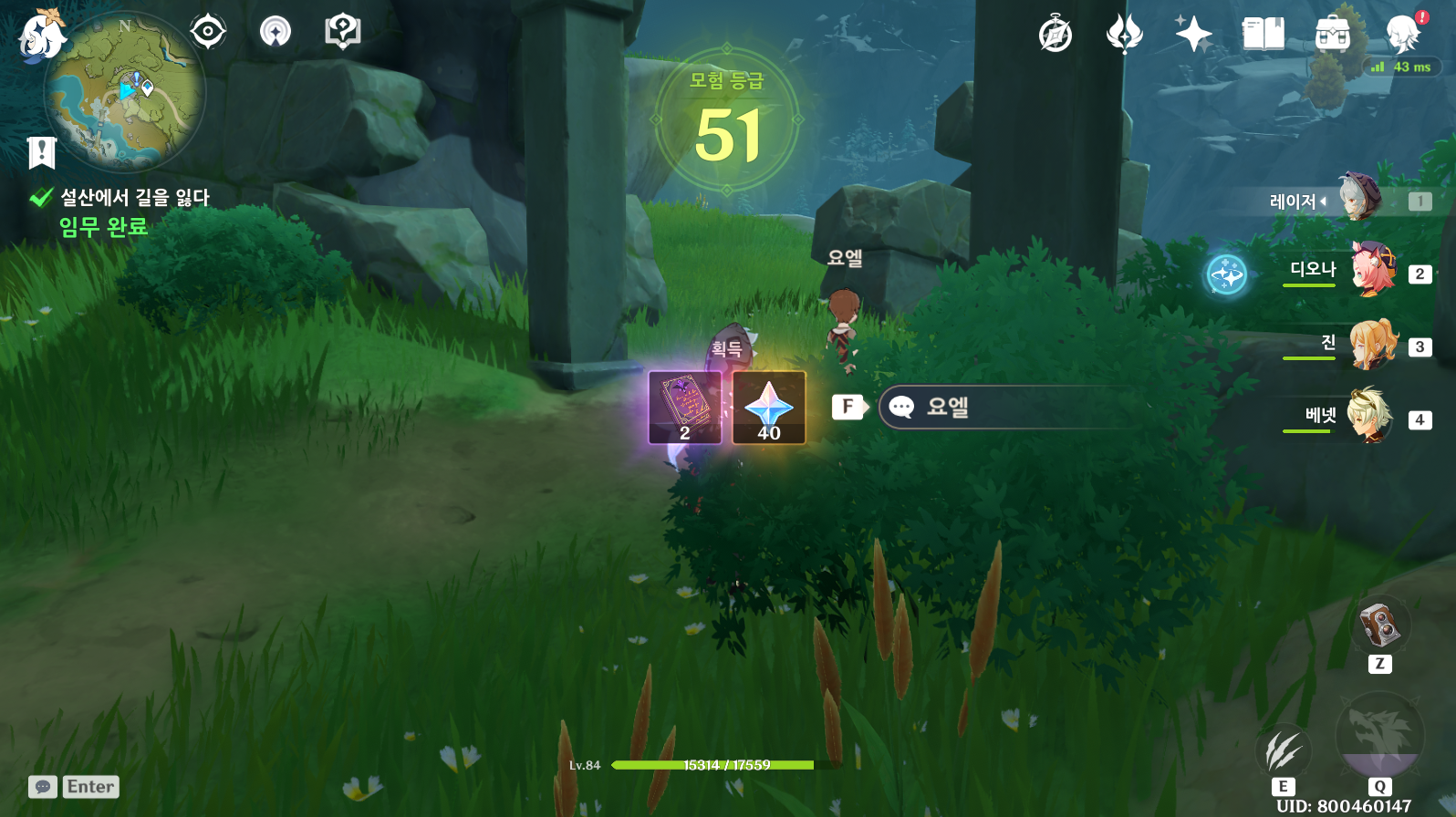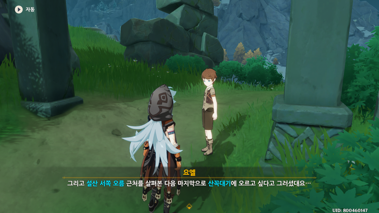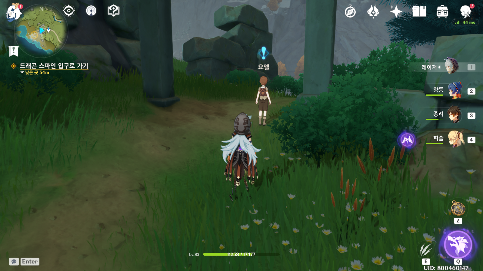 임무 받는 위치입니다. 제 캐릭터가 있는 위치이고 요엘이라는 아이에게 임무를 받을 수 있습니다.