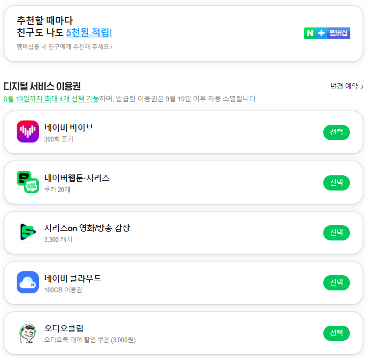 다음은 네이버 멤버십 혜택입니다.