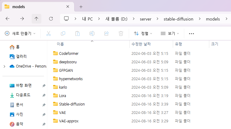 │ ├── Stable-diffusion/ (Checkpoint 모델)