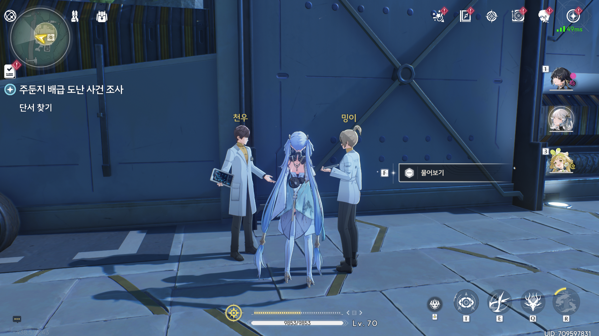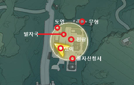 밍이, 천랑 무형이, 도영, 발자국, 물자신청서 위치