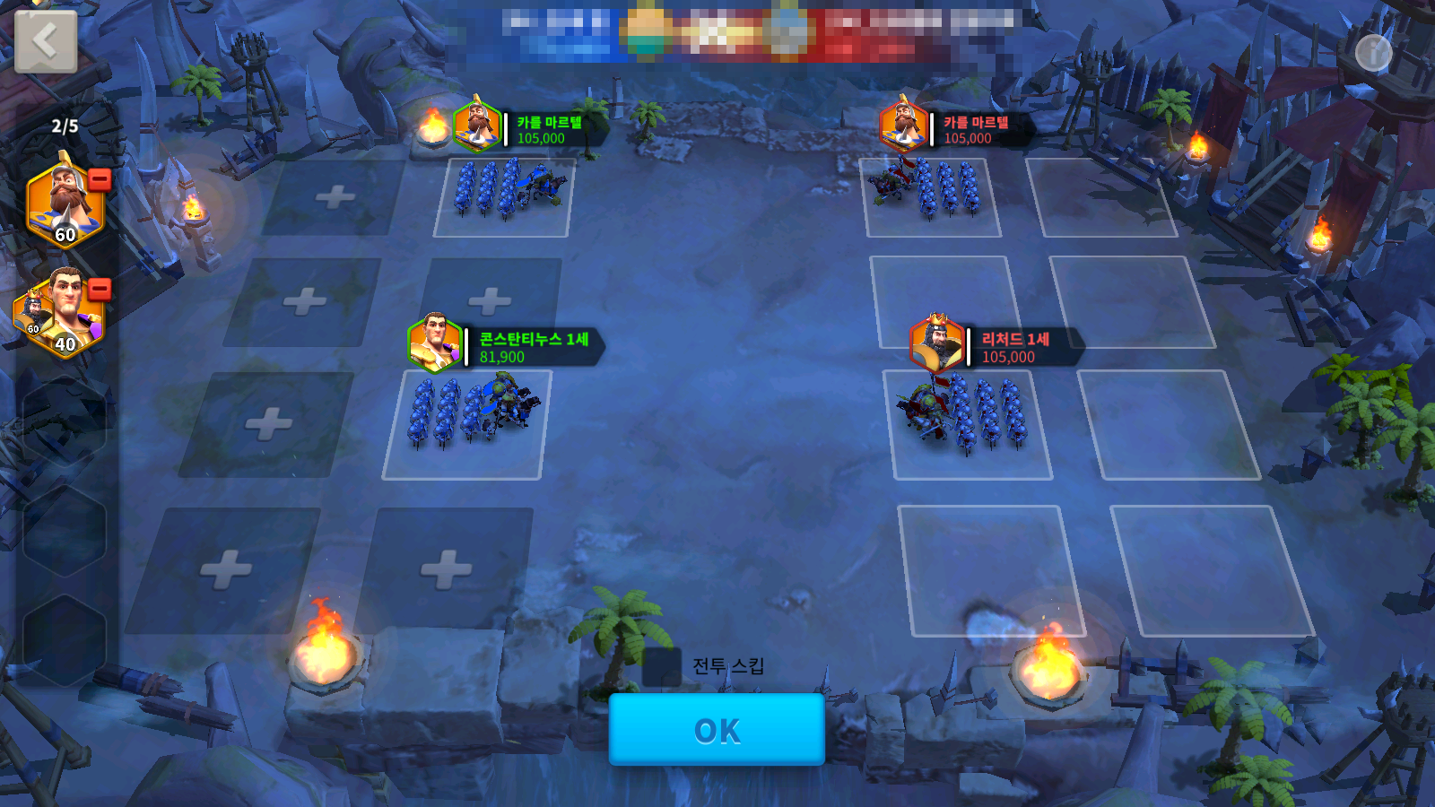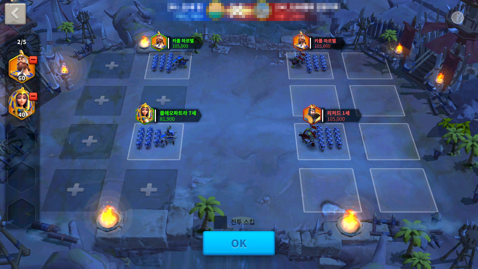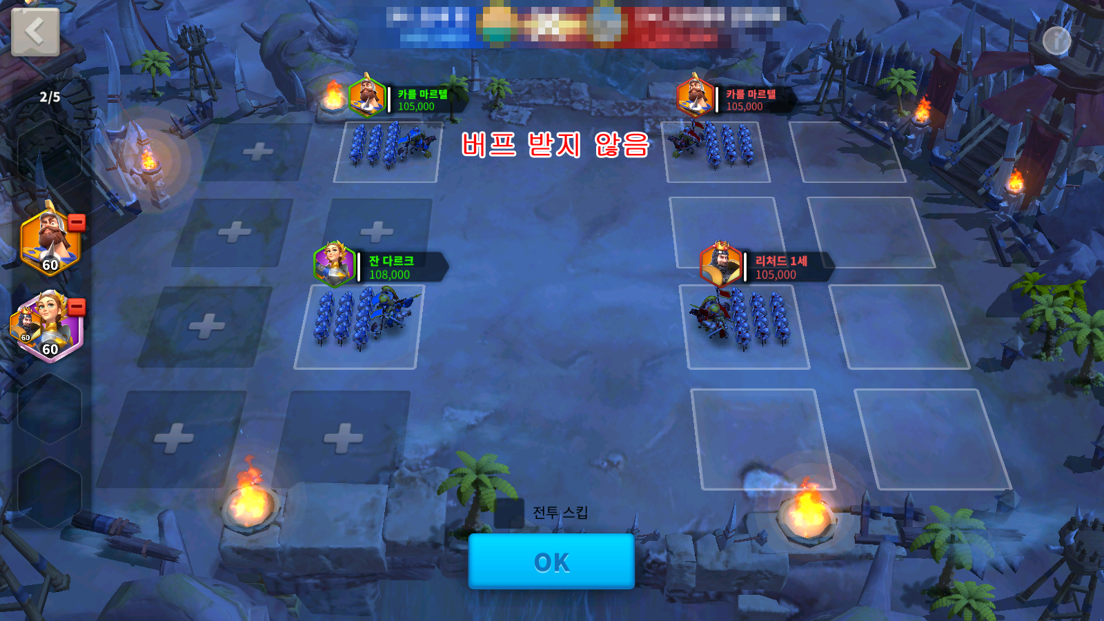 혹시나 배치를 한 칸씩 올리면 다를까에서 시작해봤습니다. 결과는 똑같습니다. 마르텔은 버프를 받지 못했습니다.