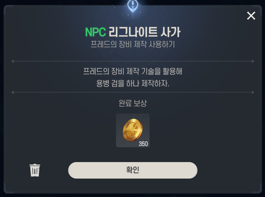 장비 제작을 알려주기 위한 퀘스트인 거 같다.