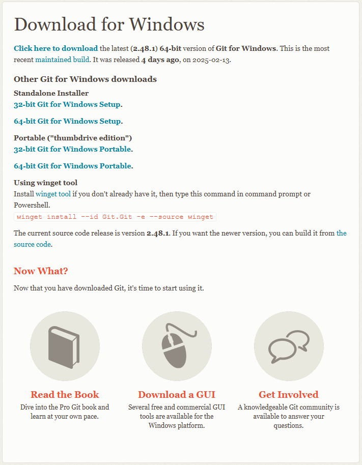 깃은 https://git-scm.com/ 링크에 들어가면, 이미지와 같은 부분이 있습니다. Download for Windows를 클릭합니다.