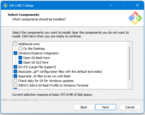 어떤 명령줄(command line) 환경에서 git 명령어를 사용할 수 있게 할지를 설정하는 단계입니다.