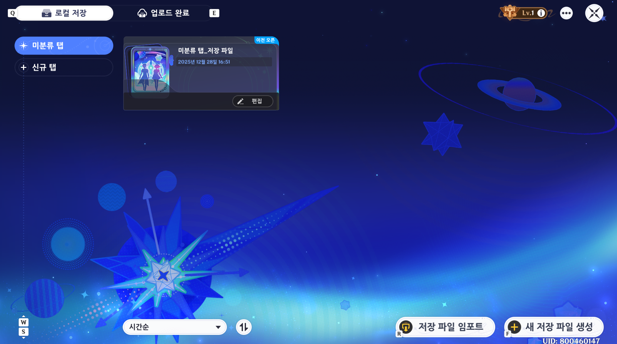 우측 하단 > 새 저장 파일 생성 클릭