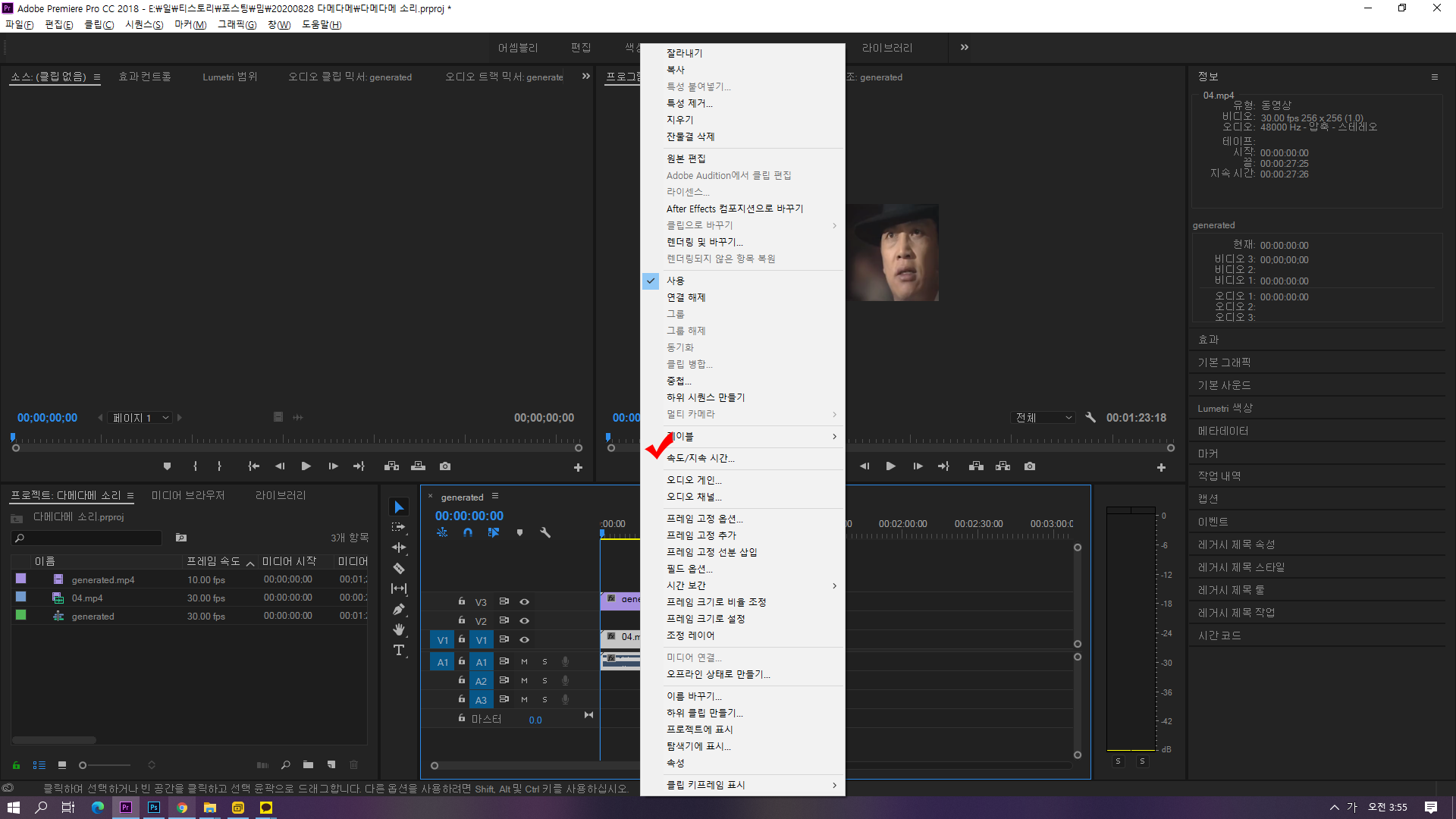 ↑소스 영상의 시간을 복사하기 위해 한 작업입니다.