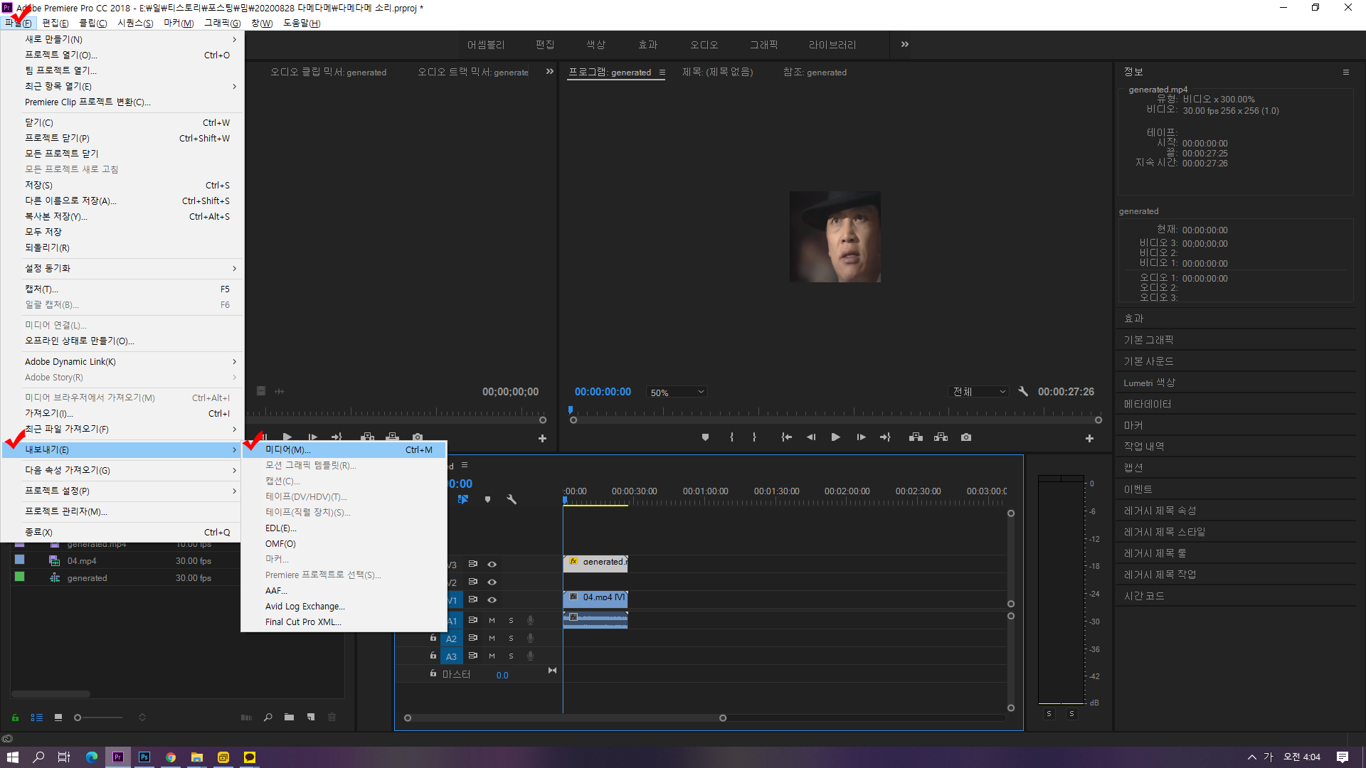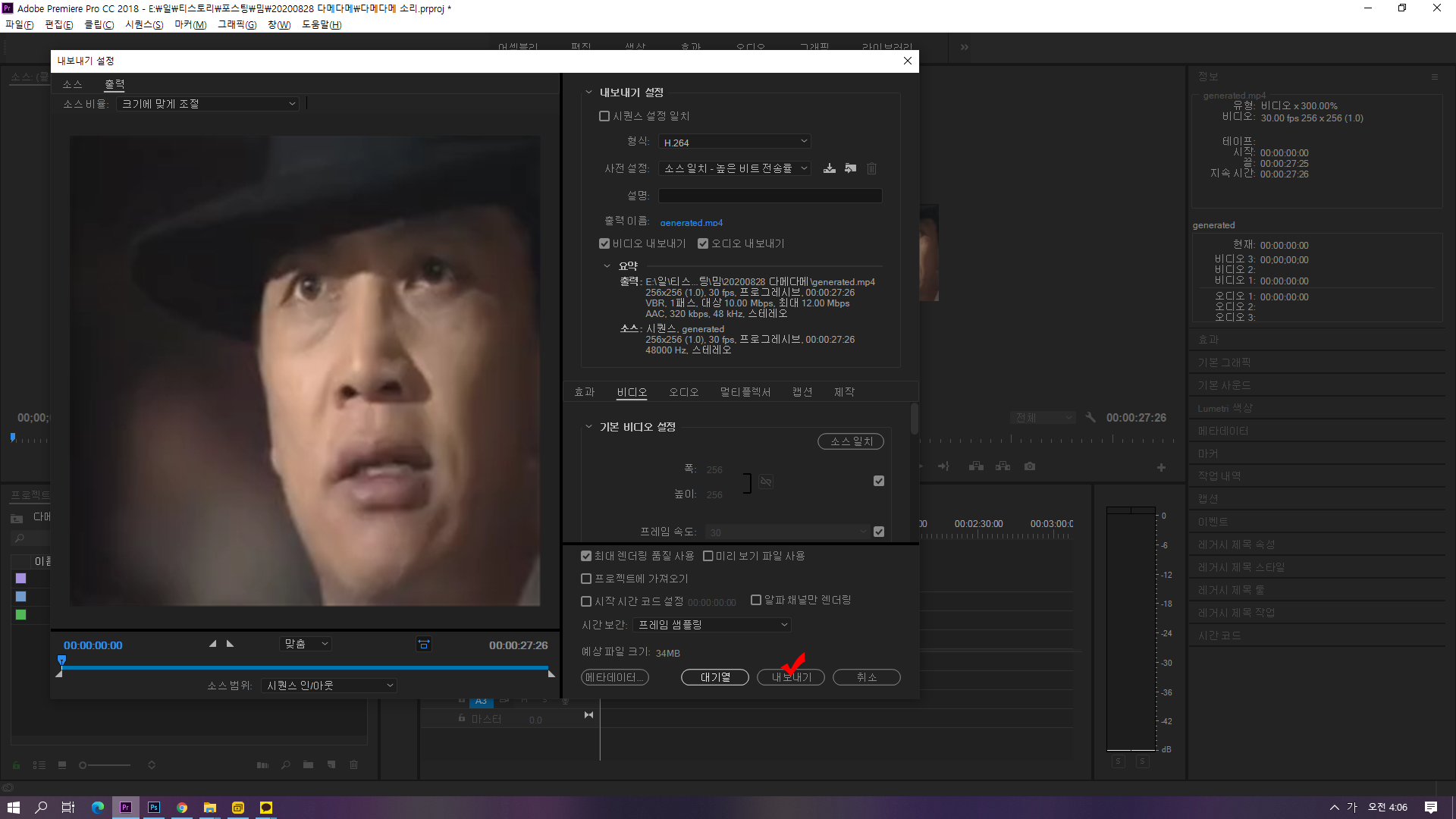 ↑이때 비디오 내보내기, 오디오 내보내기는 반드시 체크되어 있어야 합니다. 다음 하단에 내보내기 하시면 영상이 만들어 집니다.