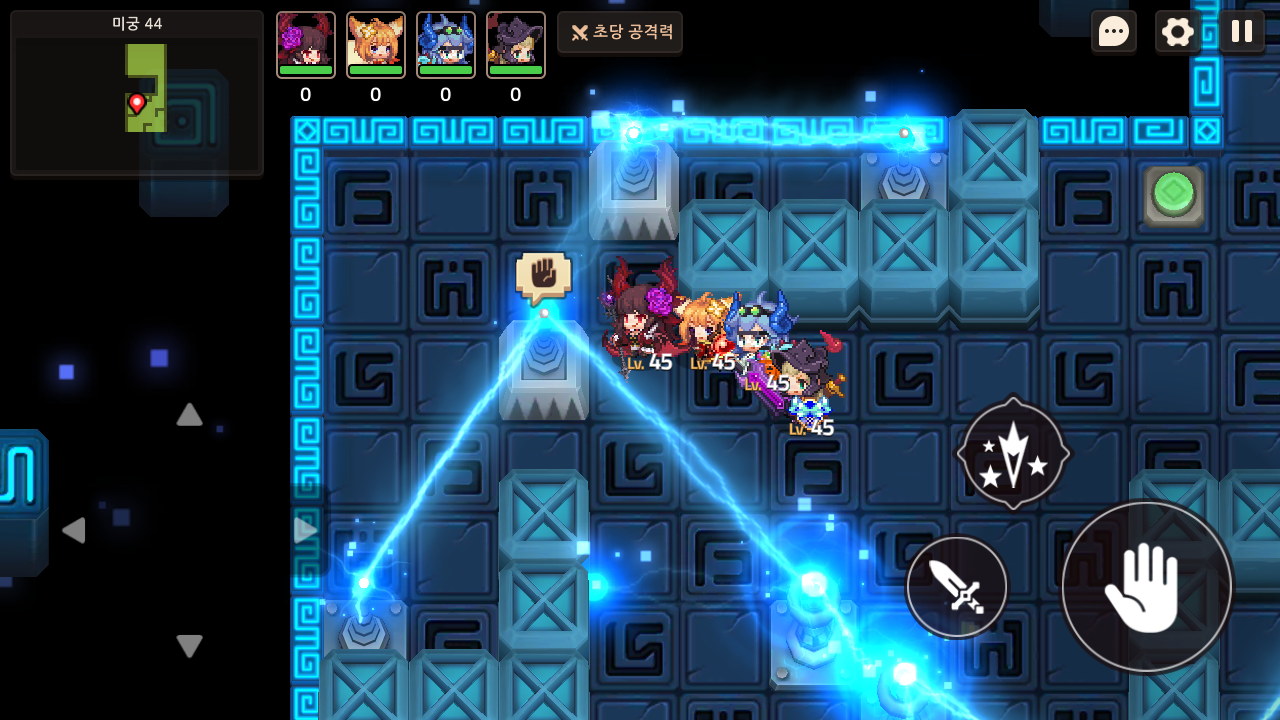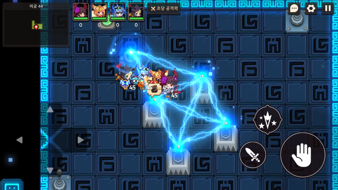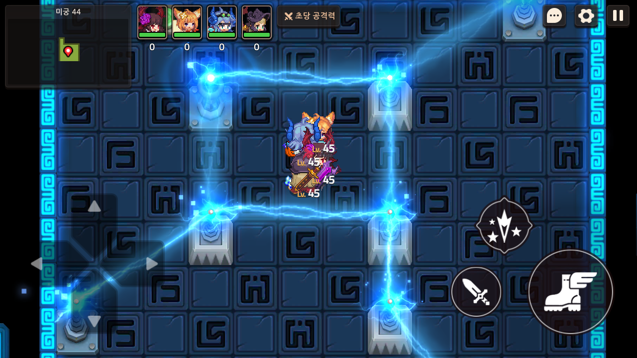미궁 44층에 입장하면 이런 모양으로 배치되어 있습니다. 전체가 연결되게 하면 클리어 됩니다.