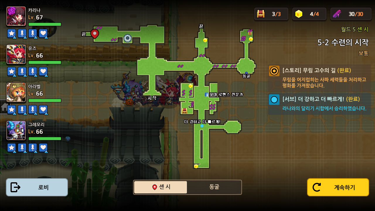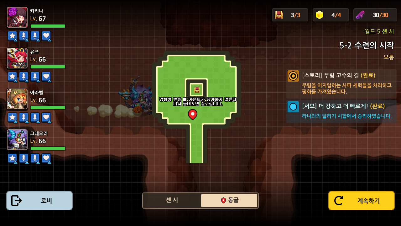 안녕하세요 5-2 수련의 시작은 메인 퀘스트가 어느 정도 진행되어야 3별을 완료할 수 있습니다. 그리고 달리기 시합 퀘스트가 있습니다. 제가 가디언 테일즈의 모든 콘텐츠를 한 거는 아니지만 제일 어려웠던 거 같습니다. 공략 시작하겠습니다.